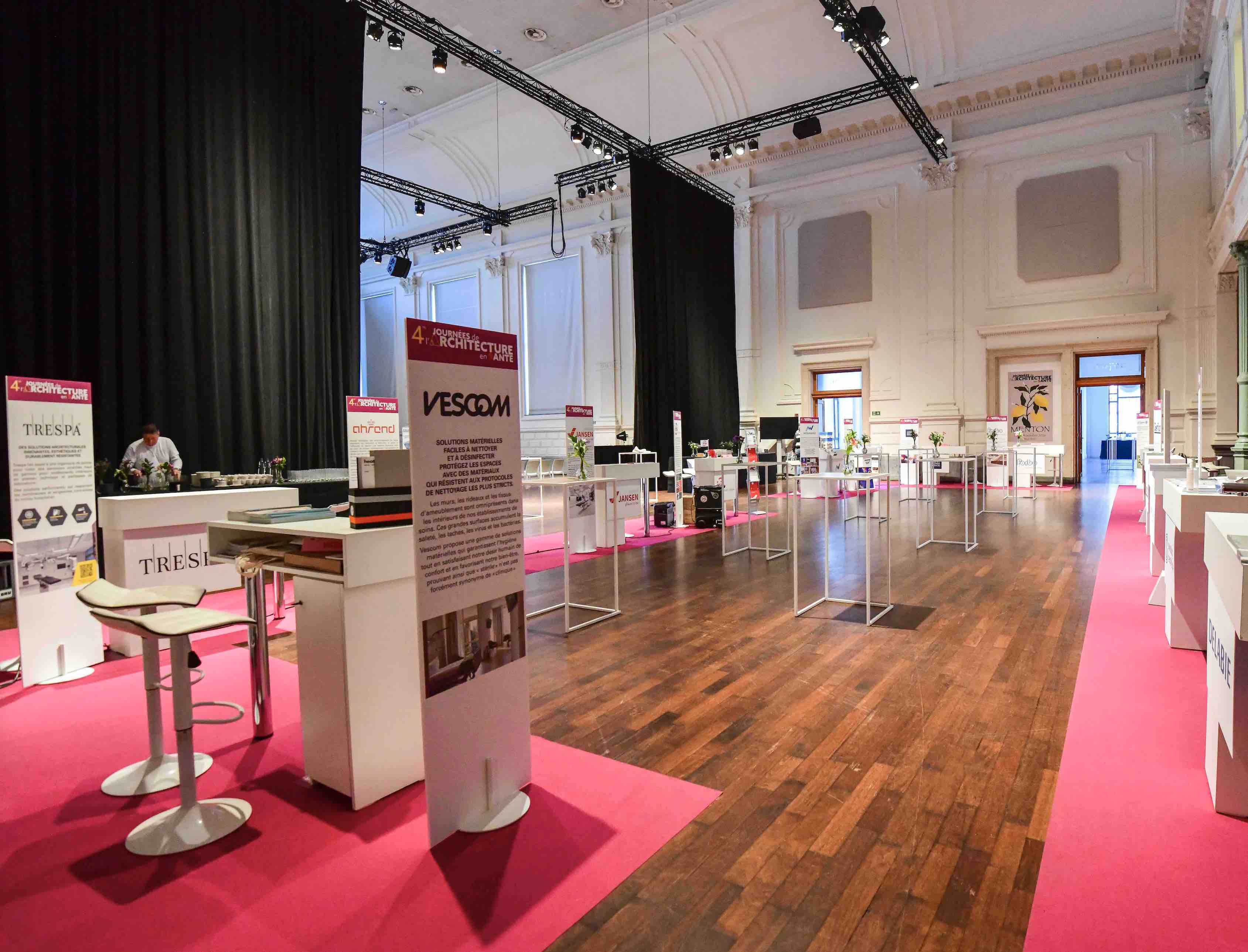 Bãori a géré l'installation générale de 16 espaces pour les Journées Architecture en Santé 2026 à la Maison de la poste Tour & Taxis à Bruxelles.