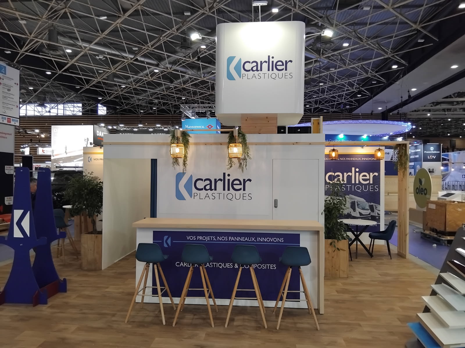 A l'occasion du salon Solutrans 2025, Bãori est heureux d'avoir accompagné après IIA à Hanovre, Carlier Plastiques sur la conception et la fabrication de leur stand de 52m2.