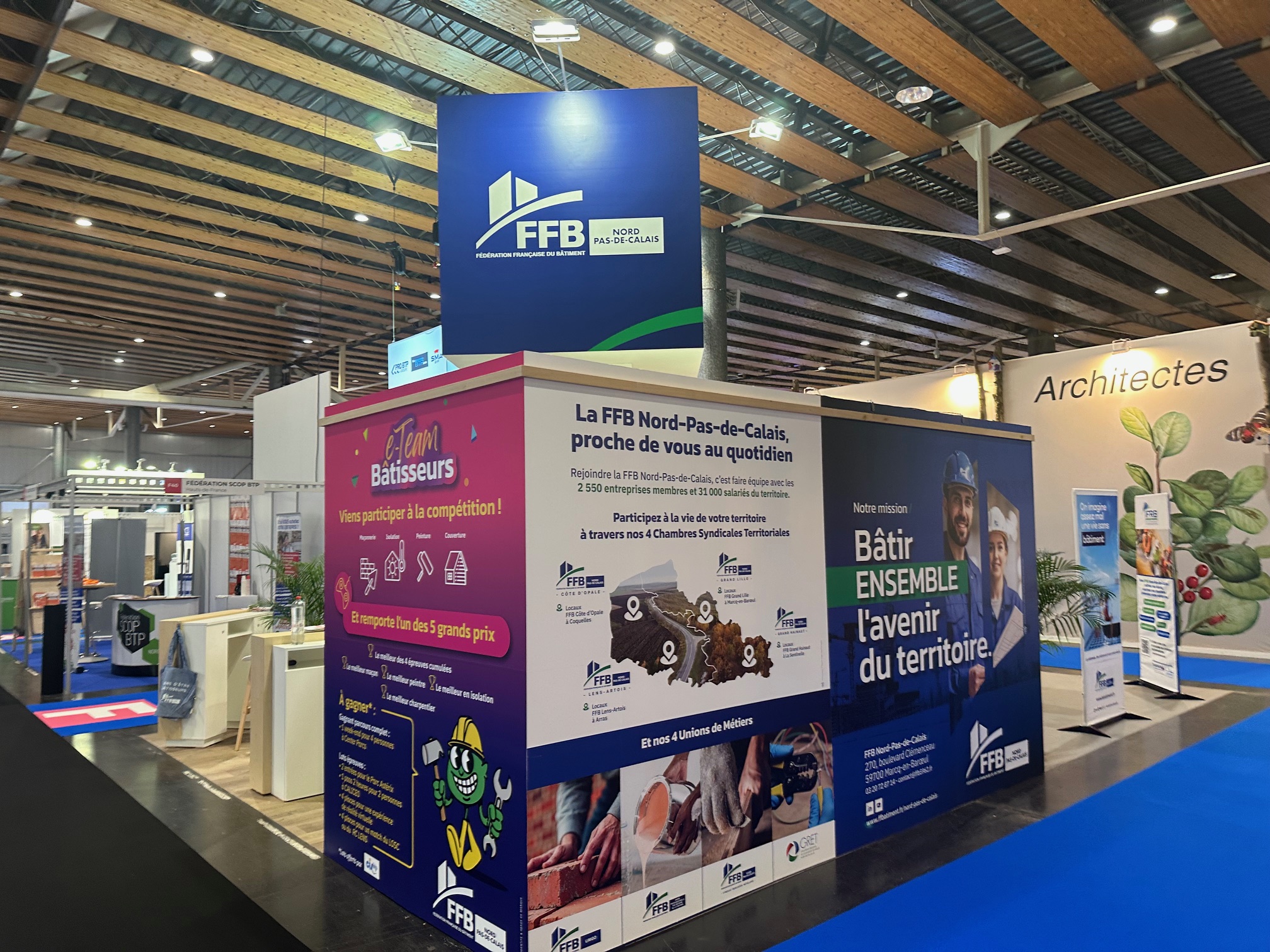 A l'occasion du salon Nordbat 2026, Bãori a accompagné la Fédération Française du Bâtiment (FFB) NORD PDC sur la conception et la fabrication de leur stand de 60m2.